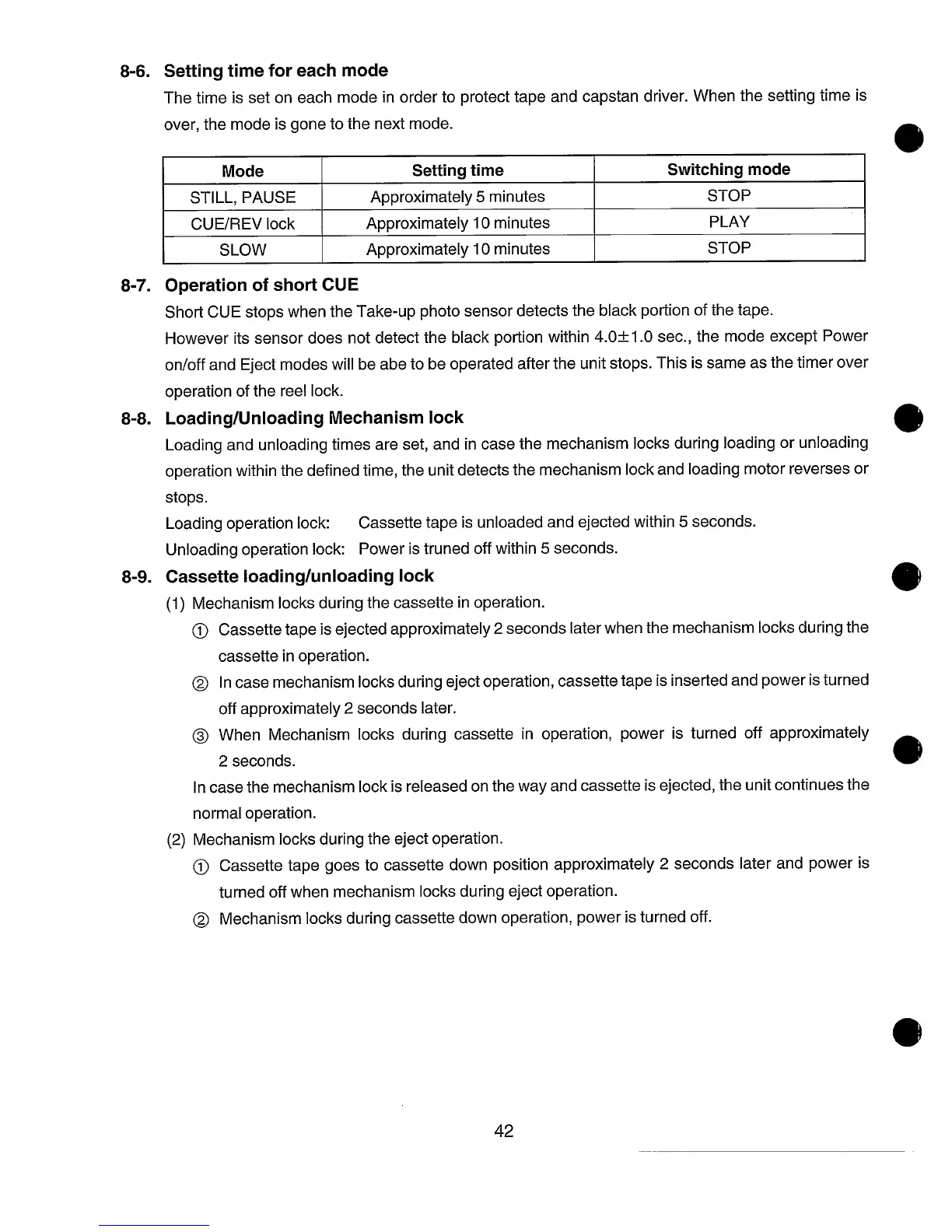 (1) Mechanism locks during the cassette in operation.