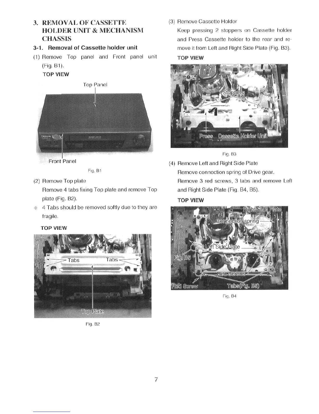 Panasonic REV-1 - Removal of Cassette Holder Unit & Mechanism Chassis; Removal of Cassette Holder Unit
