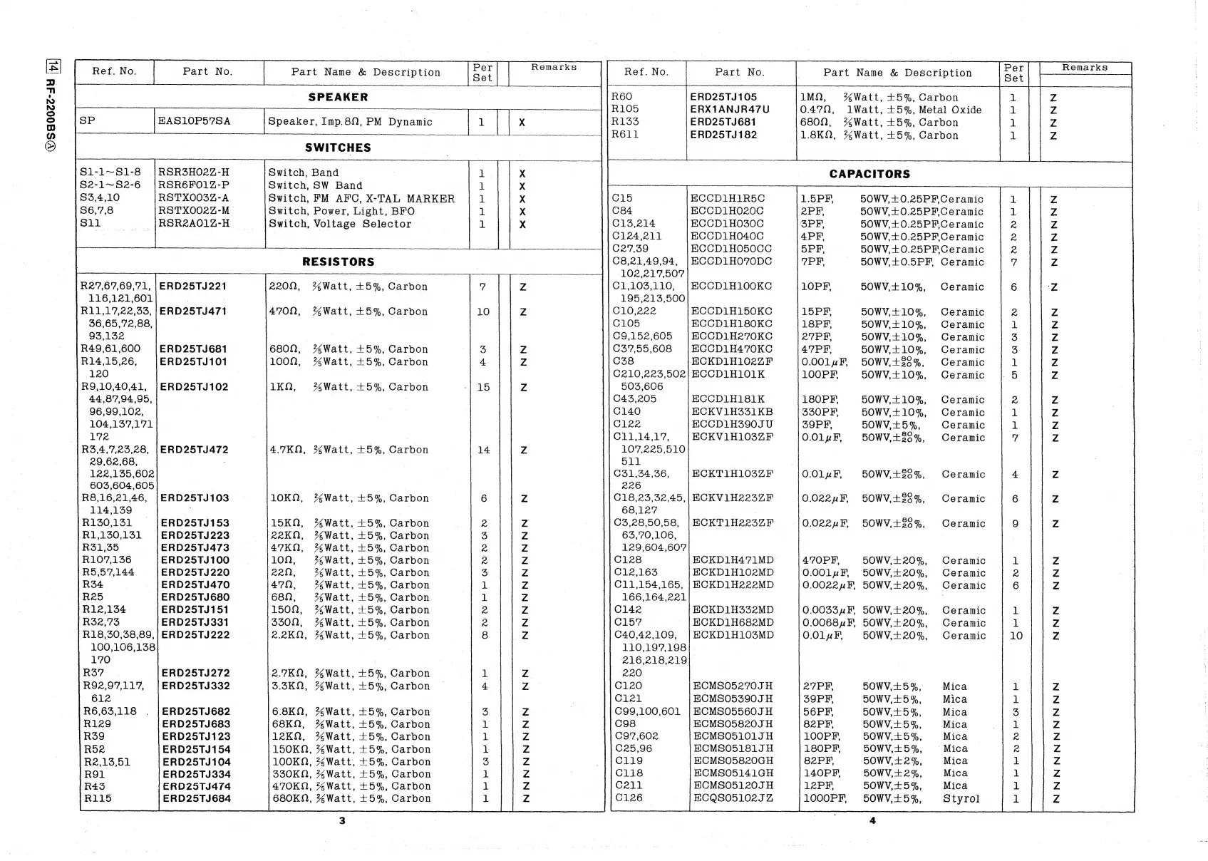 Panasonic RF-2200BS - Component Lists: Resistors, Capacitors, Switches