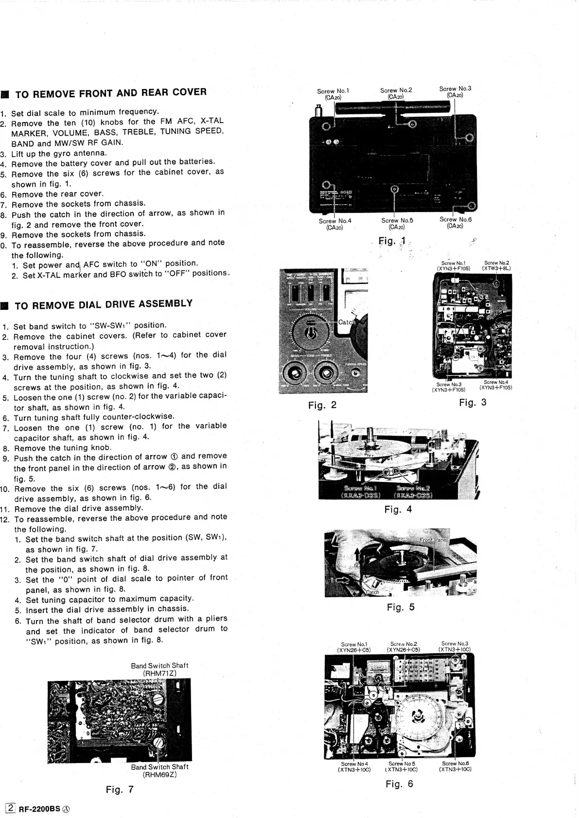 Panasonic RF-2200BS - Radio Disassembly Procedures; Front and Rear Cover Removal; Dial Drive Assembly Removal