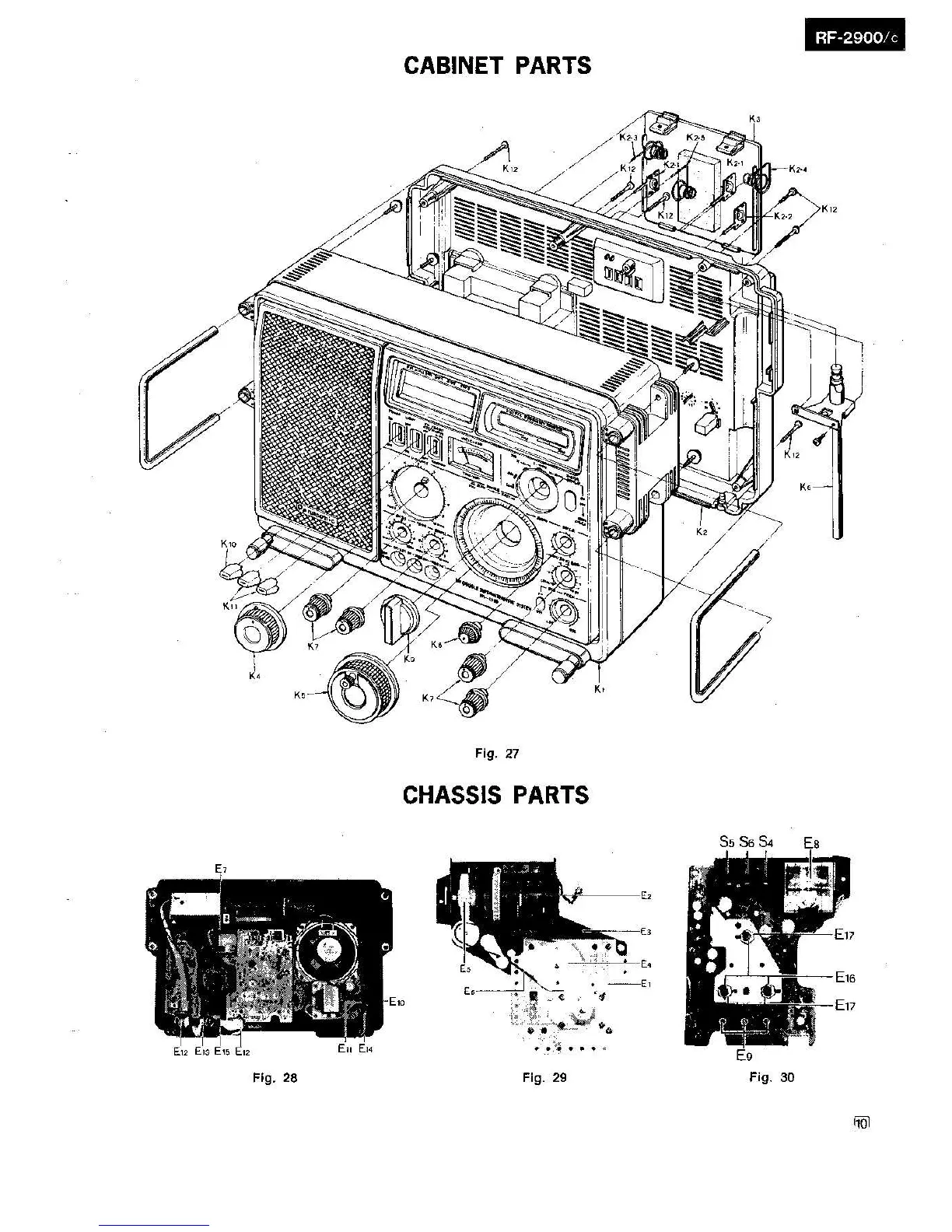 Panasonic RF-2900 - Panasonic RF-2900 Cabinet and Chassis Parts; Exploded View of Cabinet Components; Major Chassis Sub-Assemblies