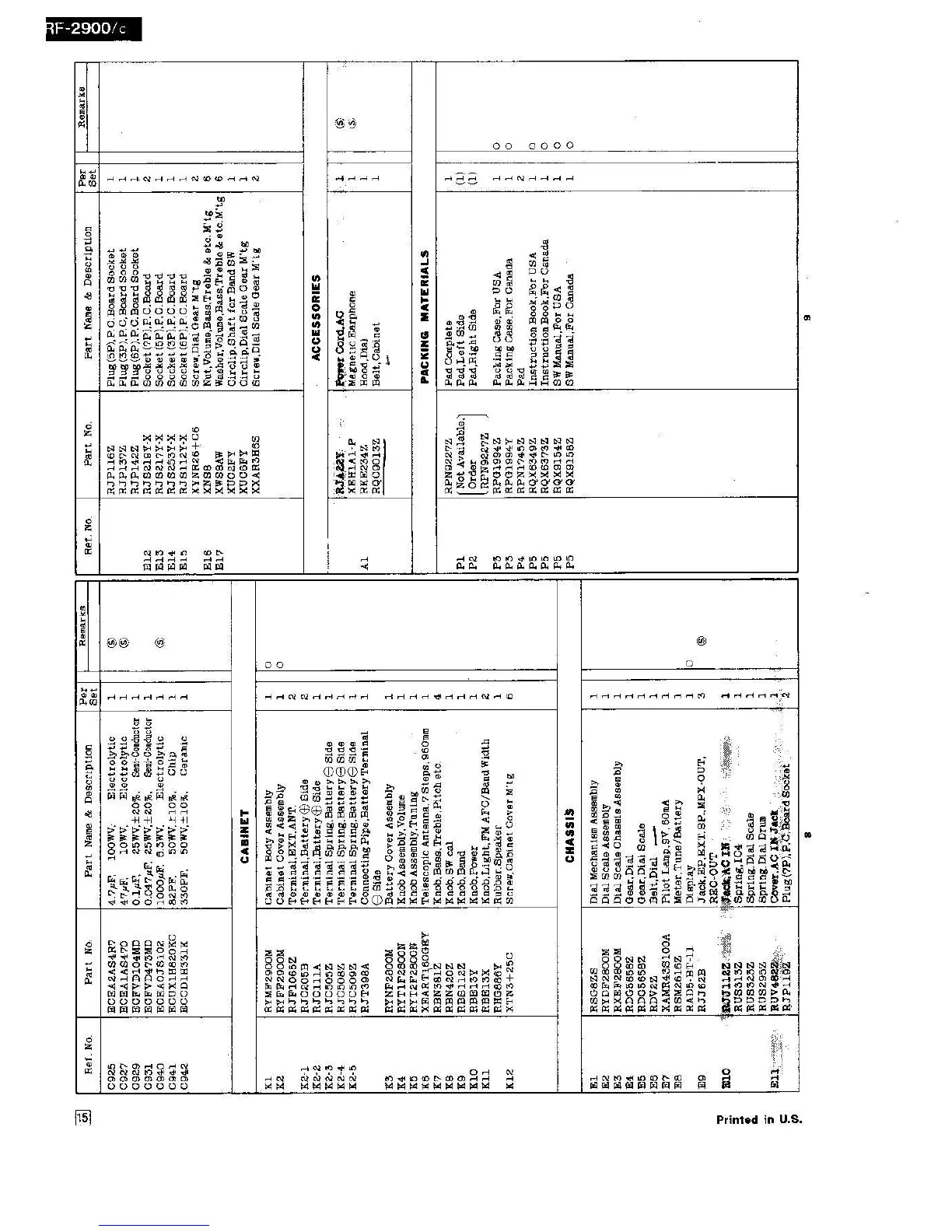 Panasonic RF-2900 - Cabinet, Chassis, Accessories, and Packing Materials
