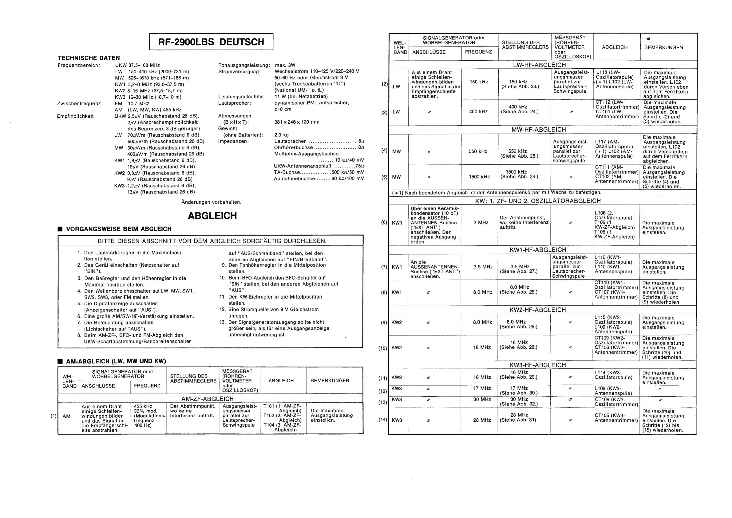 Panasonic RF-2900LBS - FM and SW Alignment; SW 1 st IF and 2 nd OSC Alignment