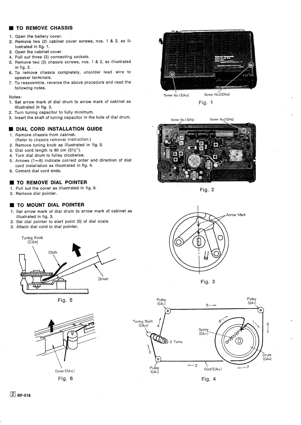Panasonic RF-516 - Chassis and Dial Cord Procedures; To Remove Chassis; Dial Cord Installation Guide; To Remove Dial Pointer