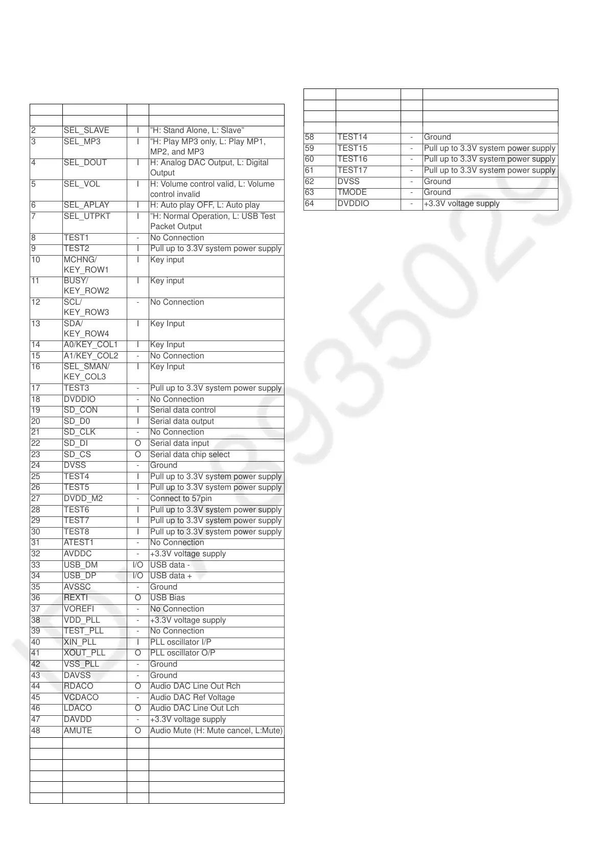 48 AMUTE O Audio Mute (H: Mute cancel, L:Mute)