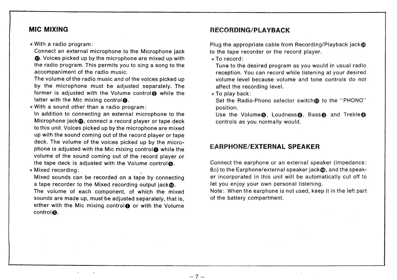 Panasonic RF-888JB - Mic Mixing; Recording;Playback; Earphone;External Speaker