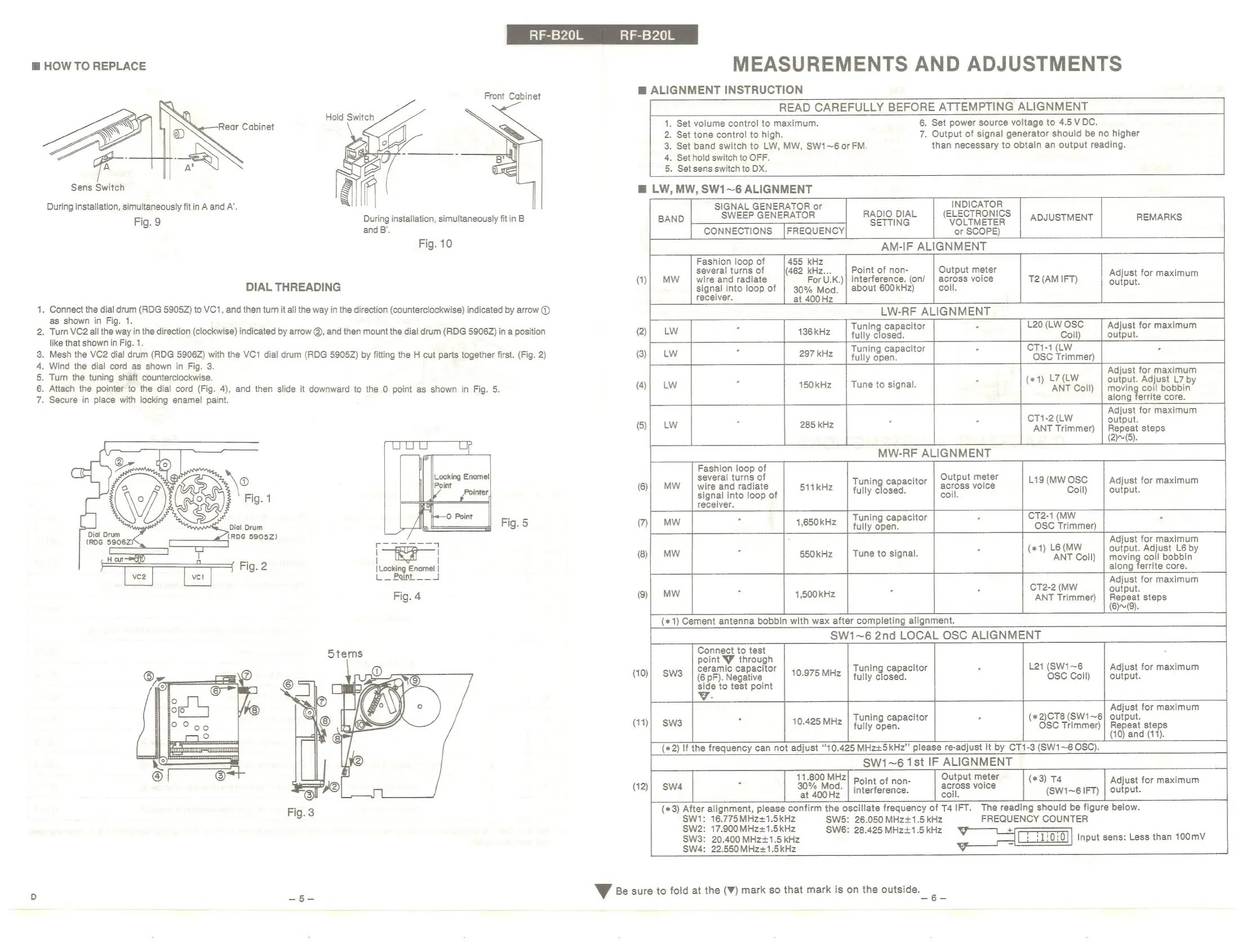 Panasonic RF-B20L - Measurements and Adjustments; How to Replace; Dial Threading; Alignment Instruction