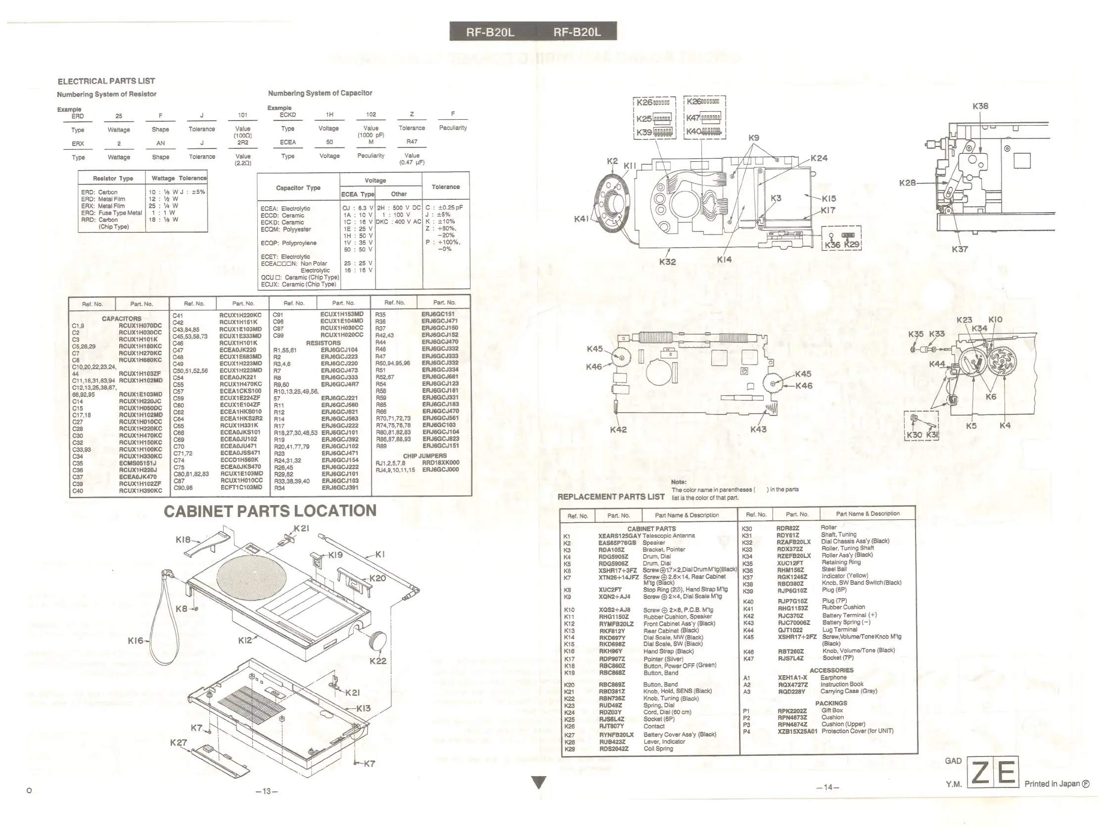 Panasonic RF-B20L - Replacement Parts List; Electrical Parts List; Numbering System of Resistor; Numbering System of Capacitor