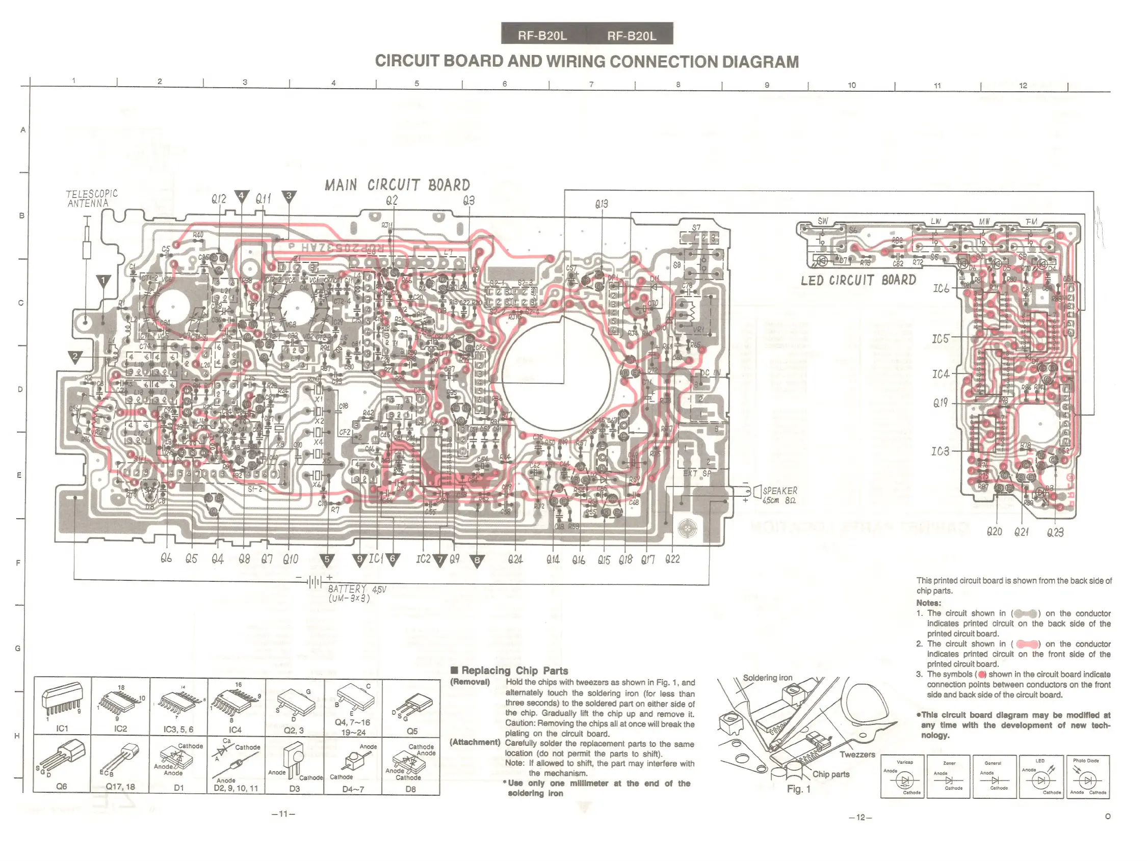 Panasonic RF-B20L - Circuit Board and Wiring Connection Diagram; Replacing Chip Parts (Removal)