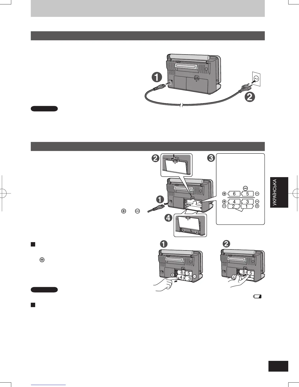 • При вставлянні батарей правильно сполучайте полюси (+ та -).