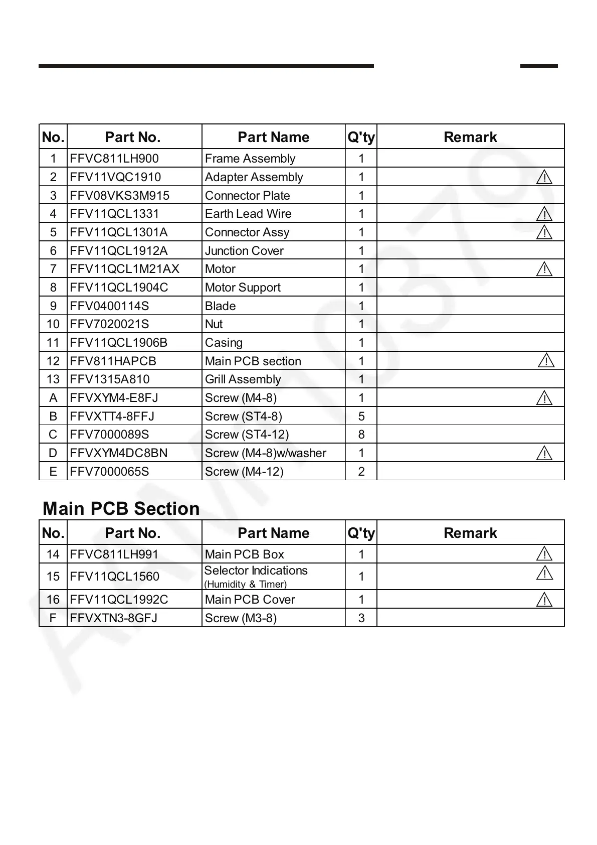No.Part No. Part NameQ'tyRemark