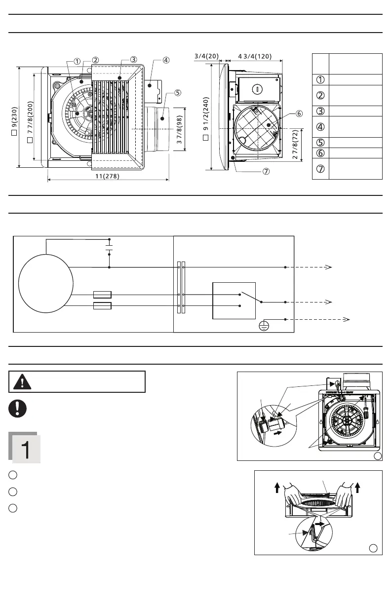 Remueva el ensamble extractor/motor presionando las pestañas laterales