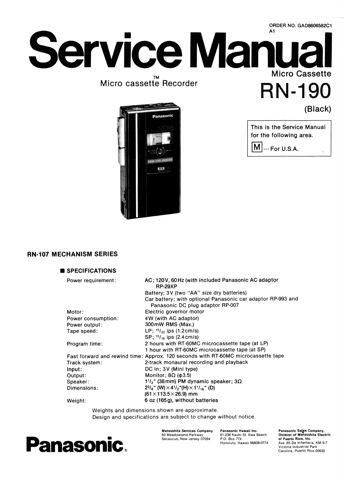 Panasonic RN-190 - Specifications