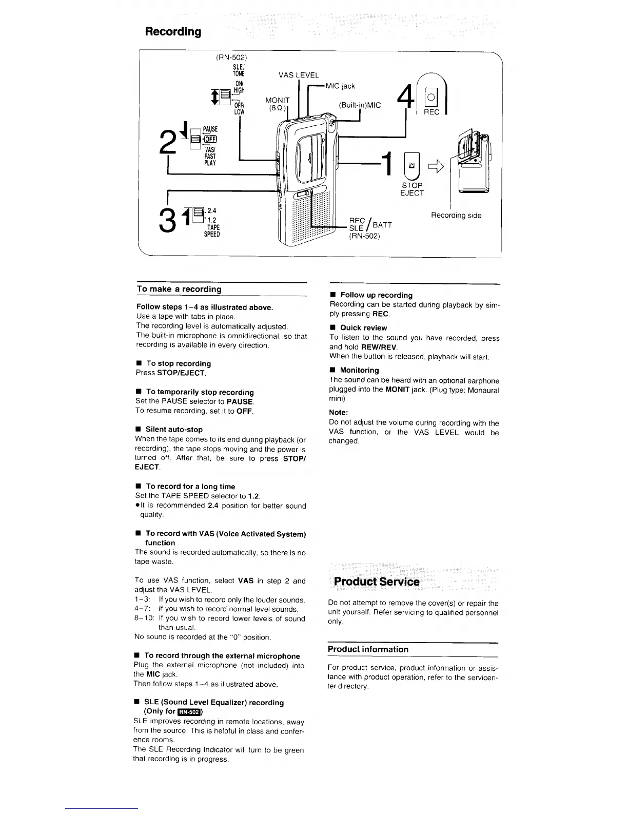 Panasonic RN-402 - Recording; To Make a Recording; To Stop Recording; To Temporarily Stop Recording