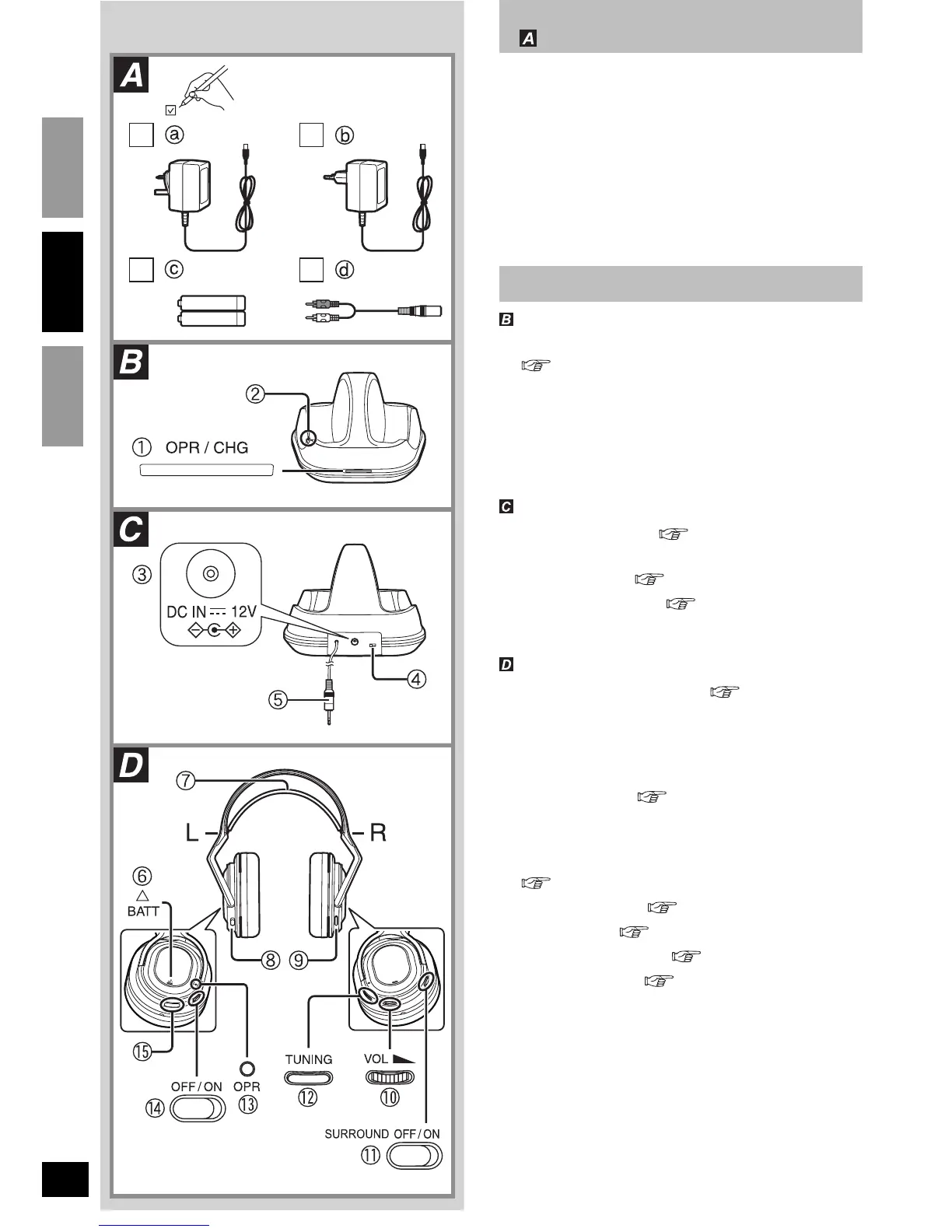 ● Lyser rødt, når hovedtelefonerne er ved at blive
