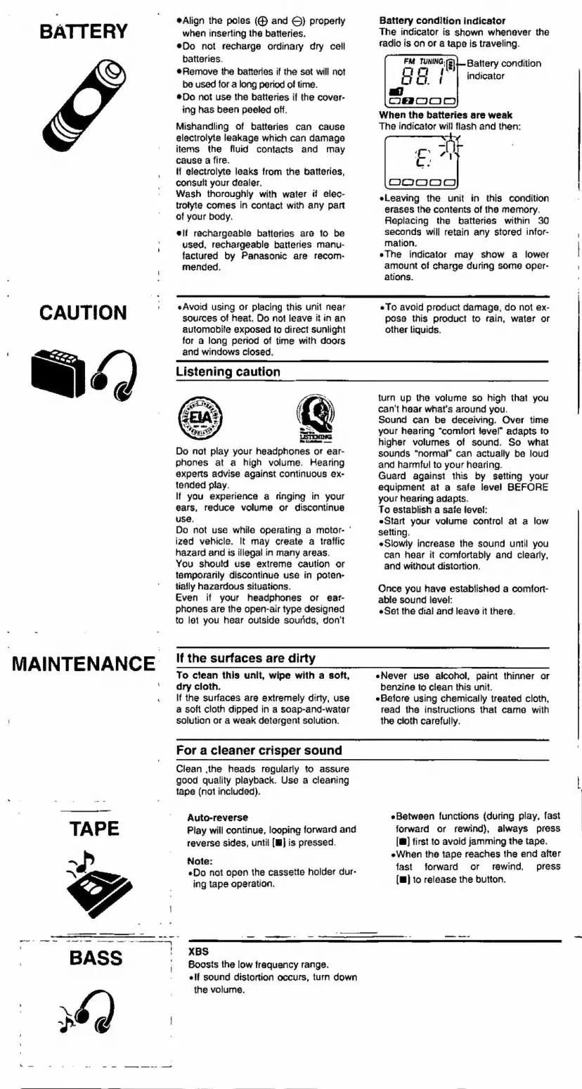 Panasonic RQ-E25V - Battery Management and Maintenance; Battery Handling and Safety