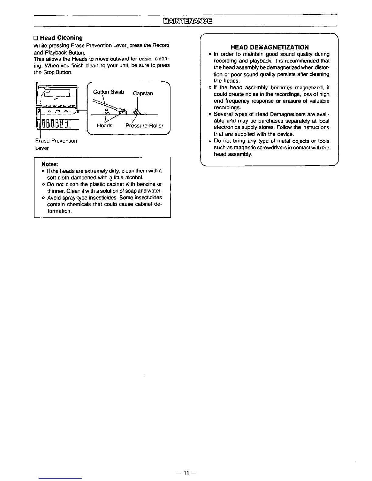 Panasonic RR-830 - Maintenance; Head Cleaning Procedure; Head Demagnetization