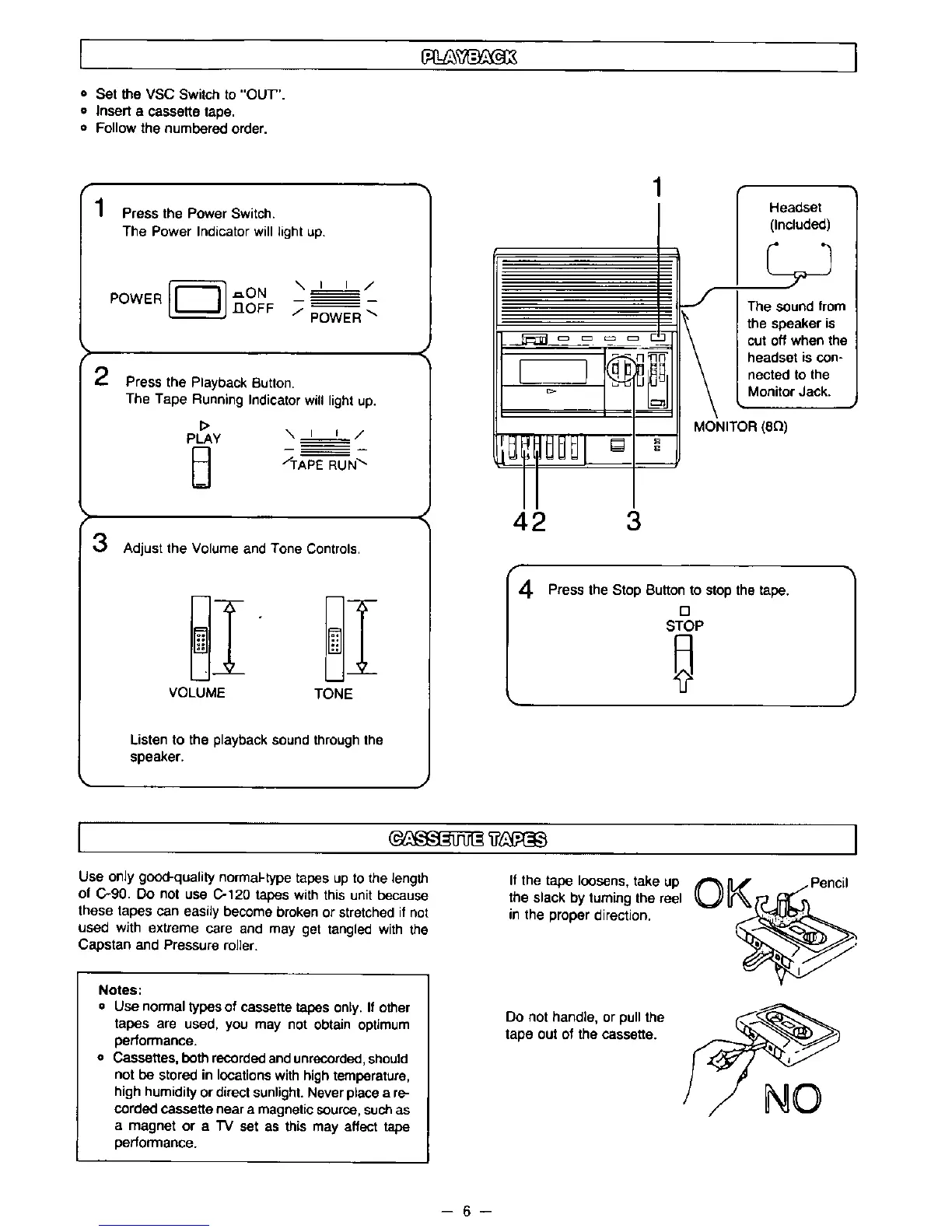 Panasonic RR-830 - Playback; Basic Playback Procedure; Cassette Tapes