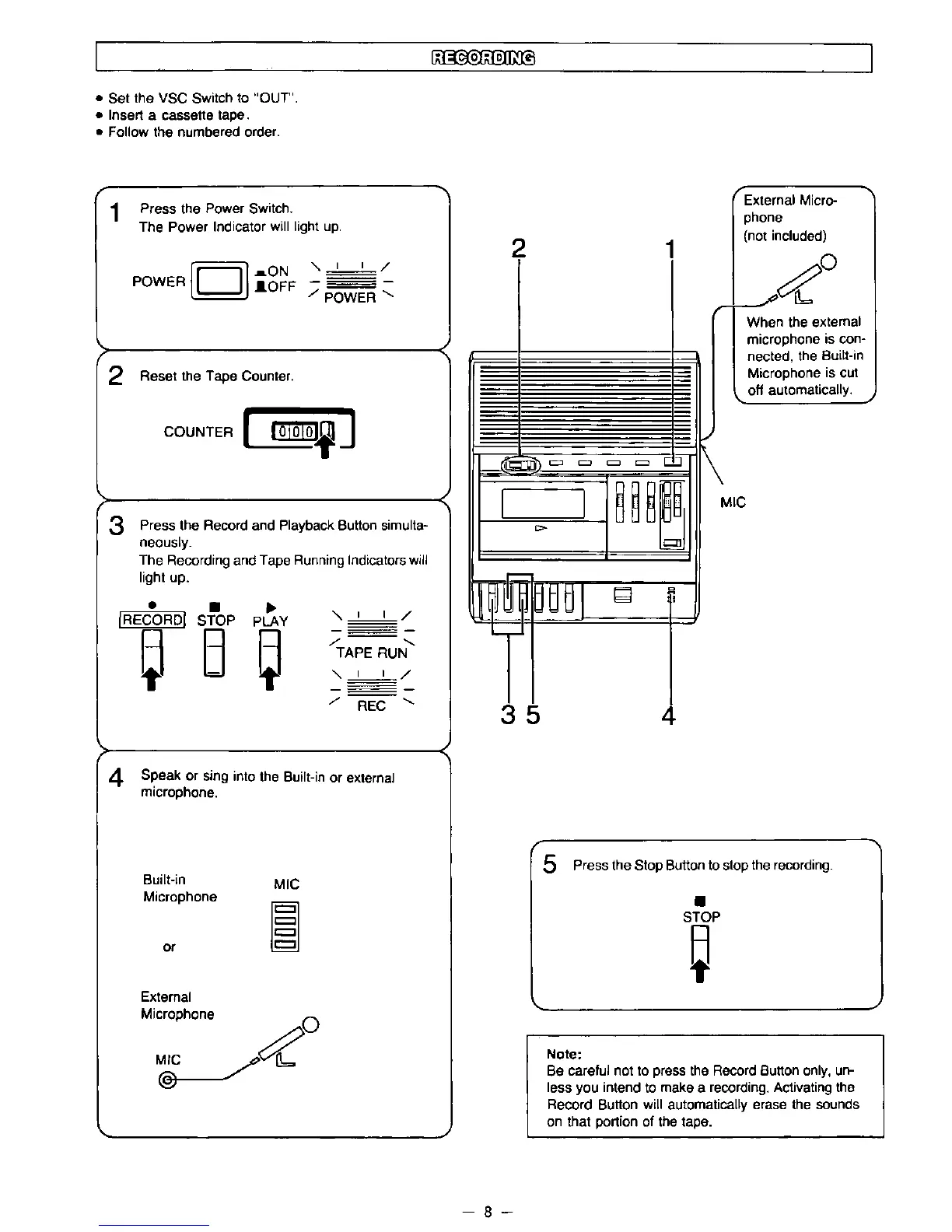 Panasonic RR-830 - Recording; Recording Procedure