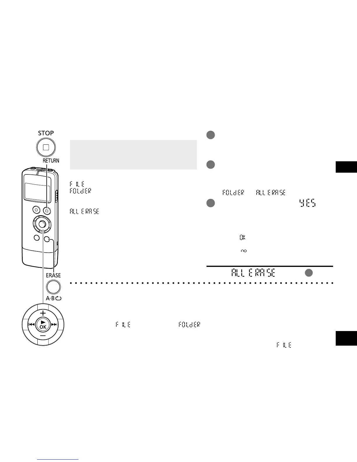 ● The file numbers displayed on this unit are moved forward after file deletion “ ”.