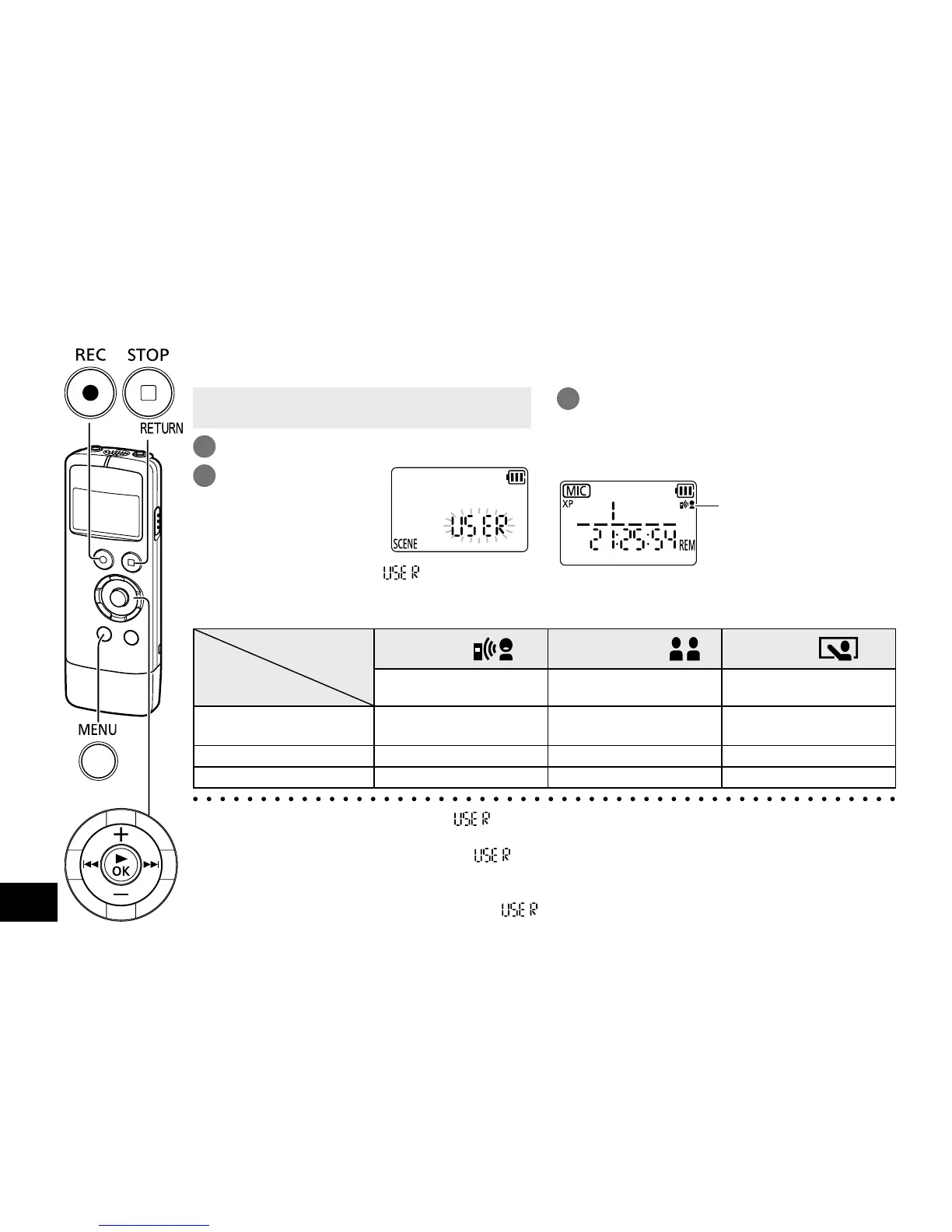 This unit offers recommended recording settings for each recording scene. Selecting a recording