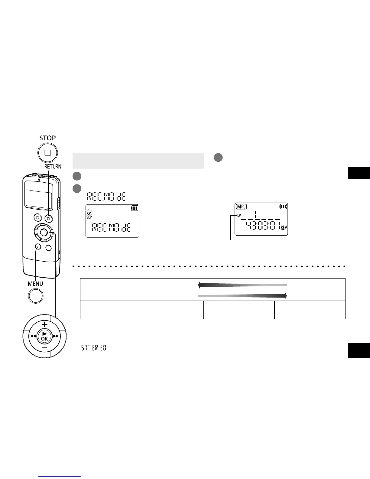 ● According to the sound quality, recording time (