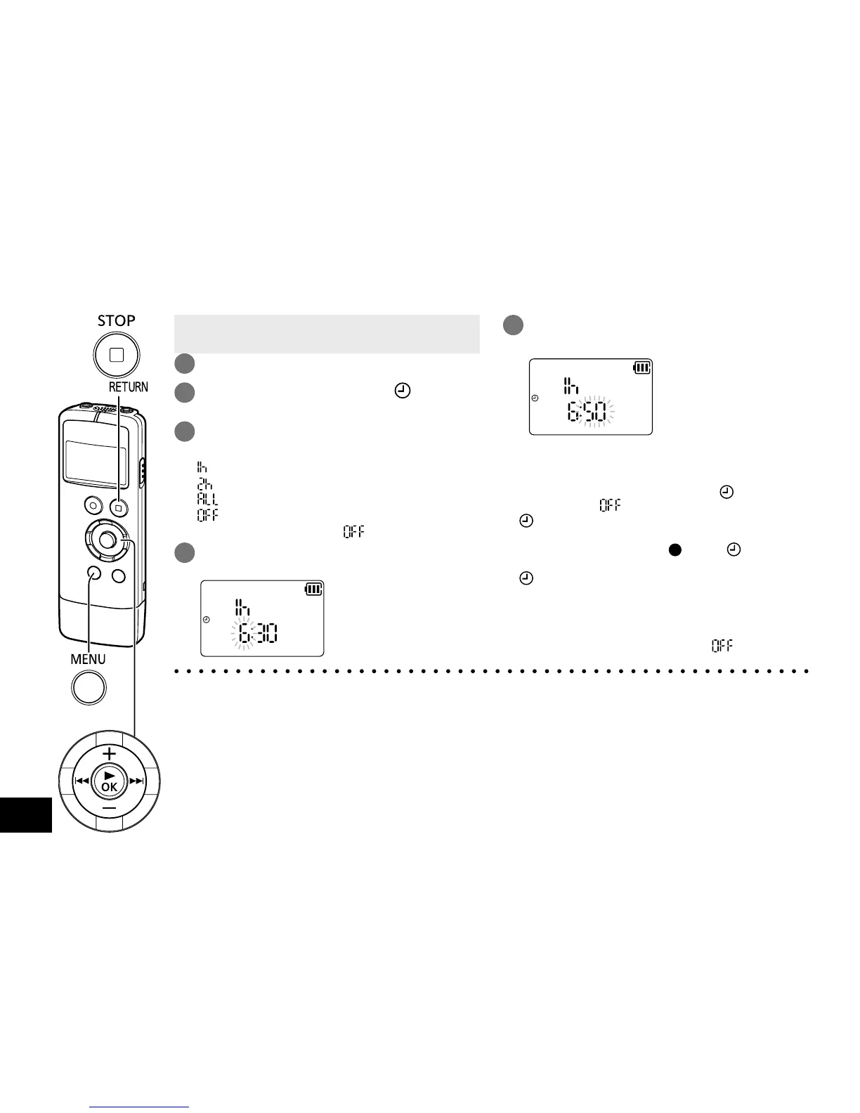 ● If the battery is replaced after setting the recording time, set the time again as it will be cancelled