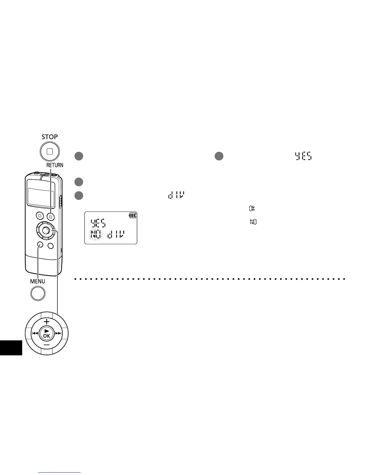 ● A file length of less than approx. 2 seconds cannot be divided.