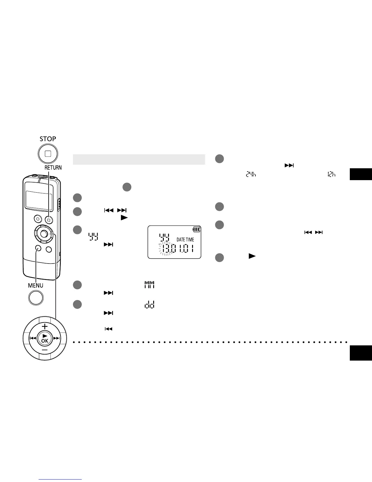 Set the correct date and time as this information is used for file names (➜ page 33) and recording.