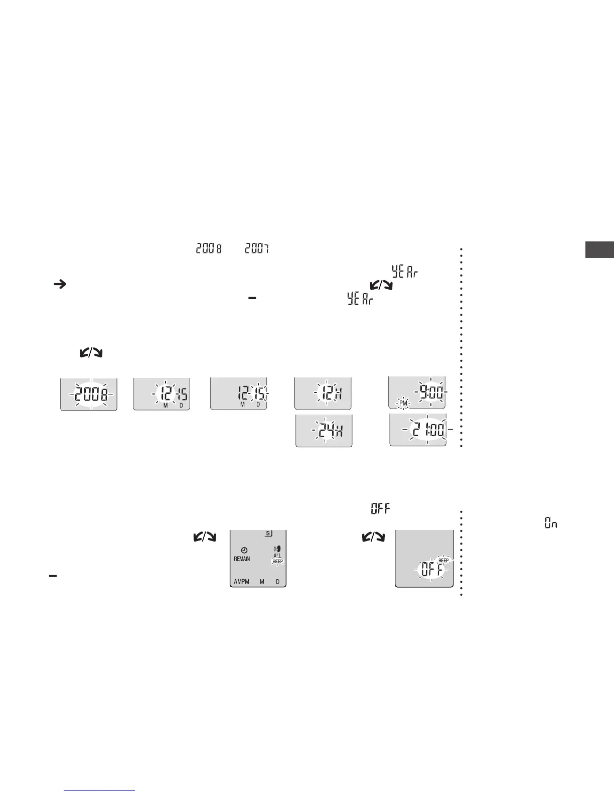 * When the year is flashing (e.g. or on the display), begin from step 4.
