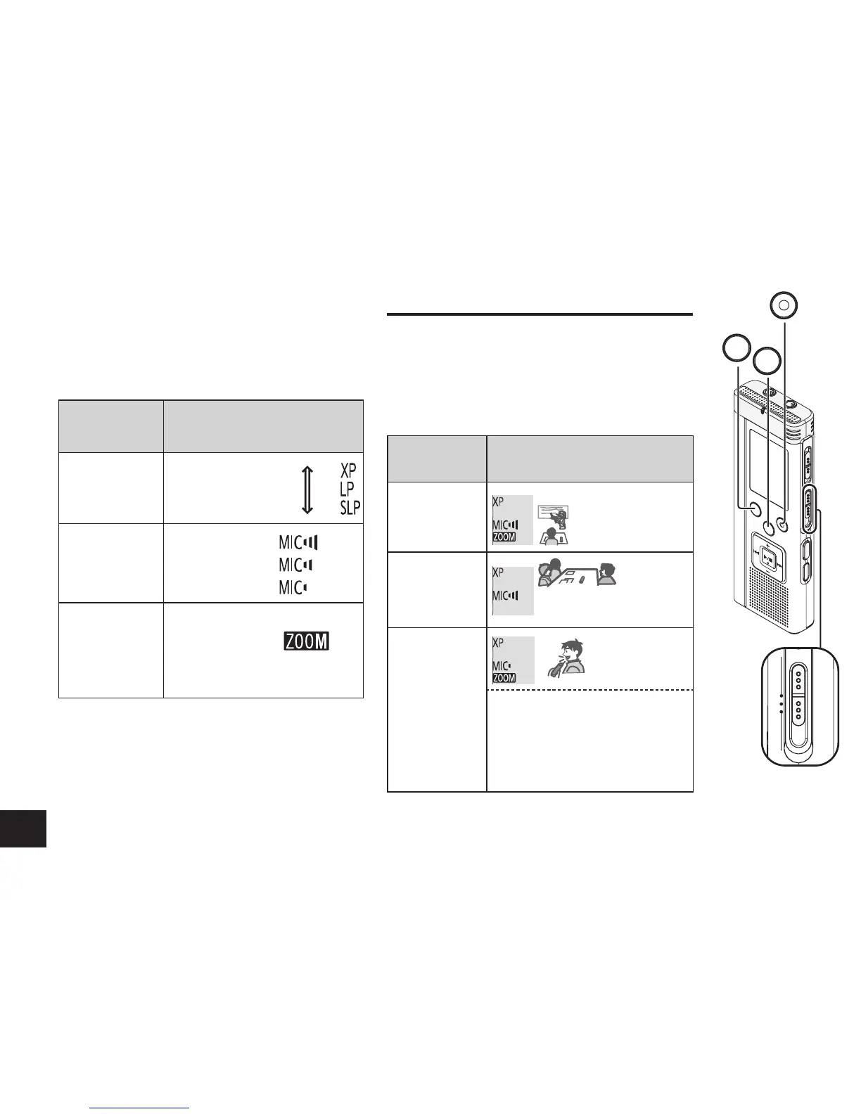 This unit has 3 recording setting items