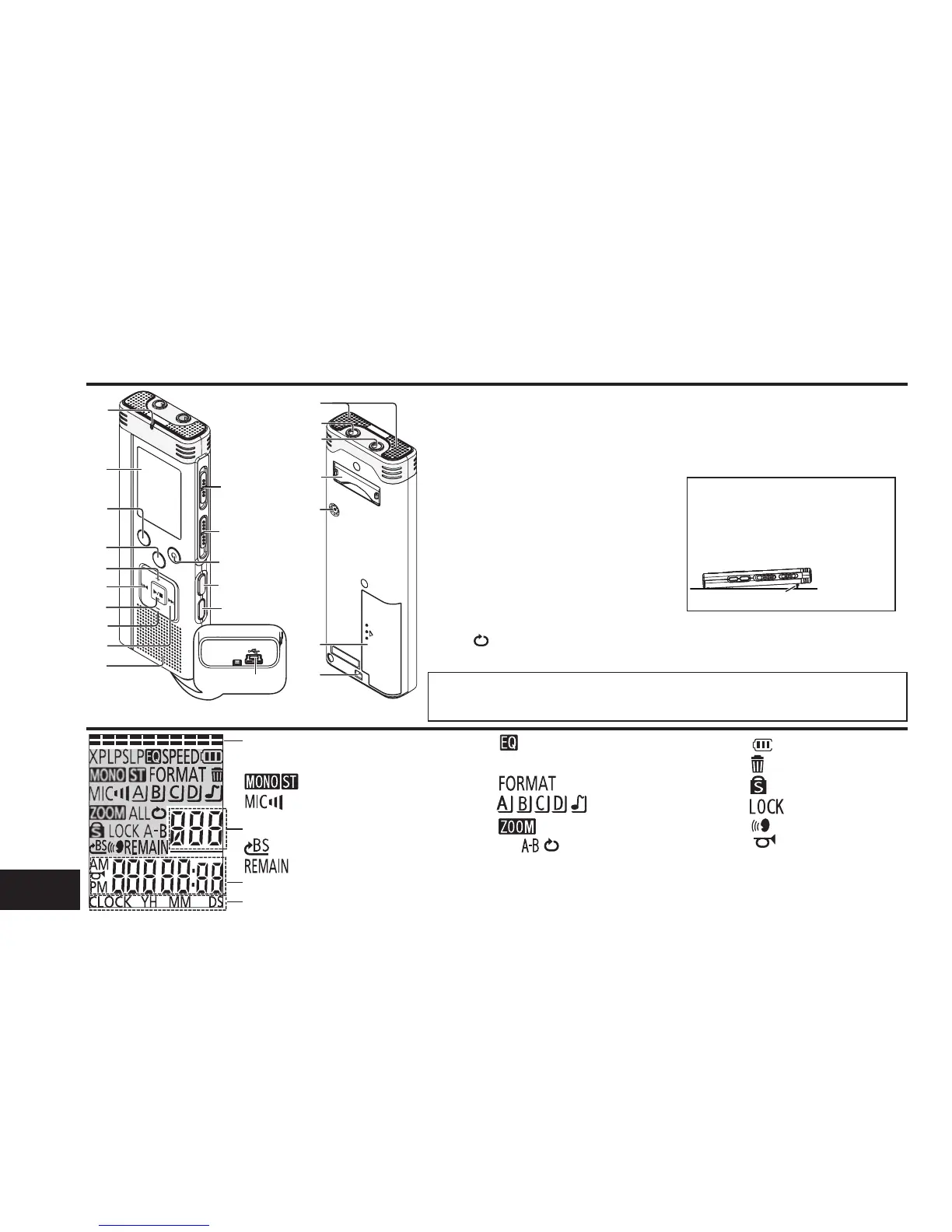 Recording (Playback) elapsed time/Possible remaining recording time/Remaining playback time/Current time etc.