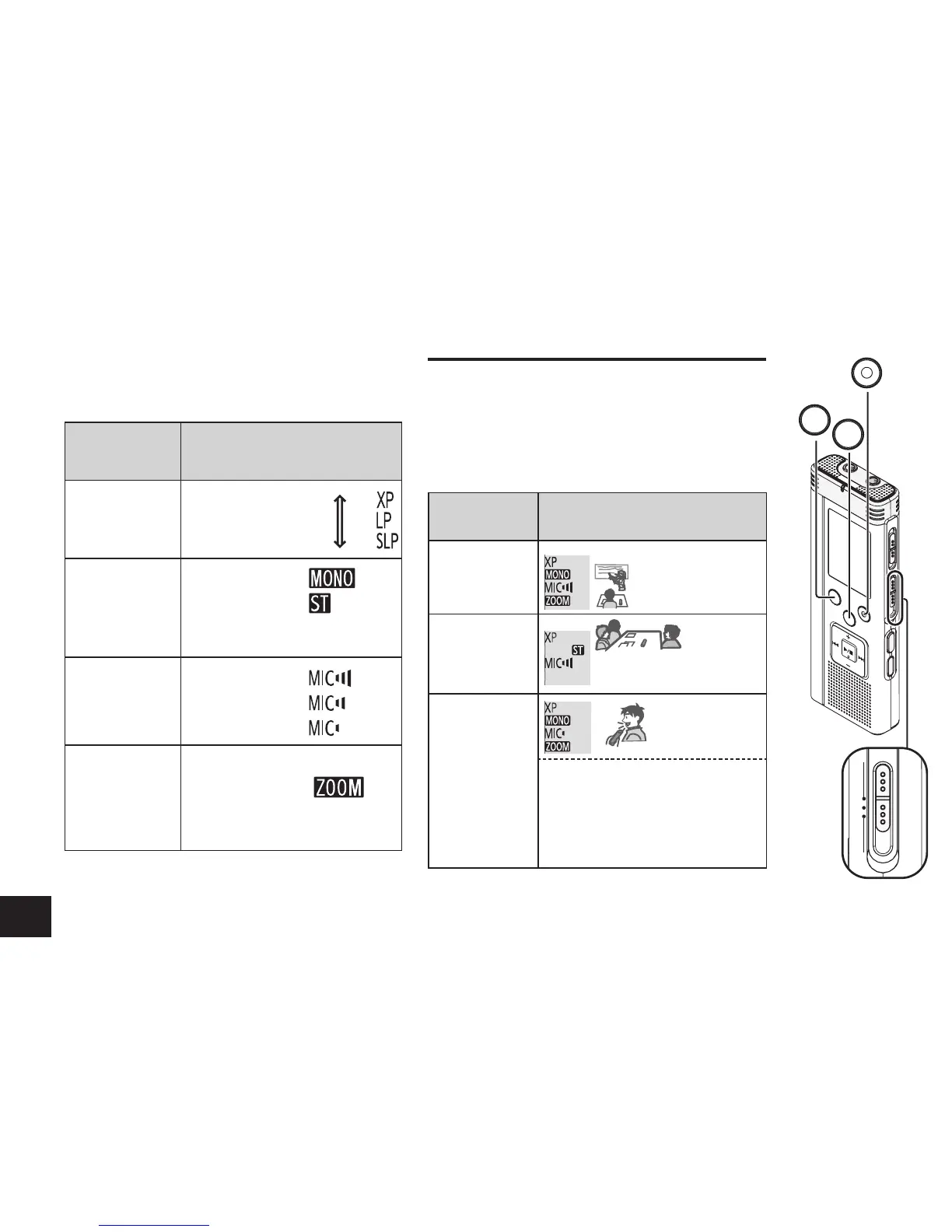 of the recording mode and Stereo/Monaural.