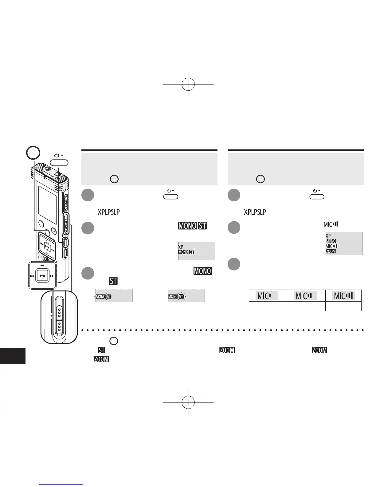 Changing recording settings (Monaural/Stereo, Microphone sensitivity)