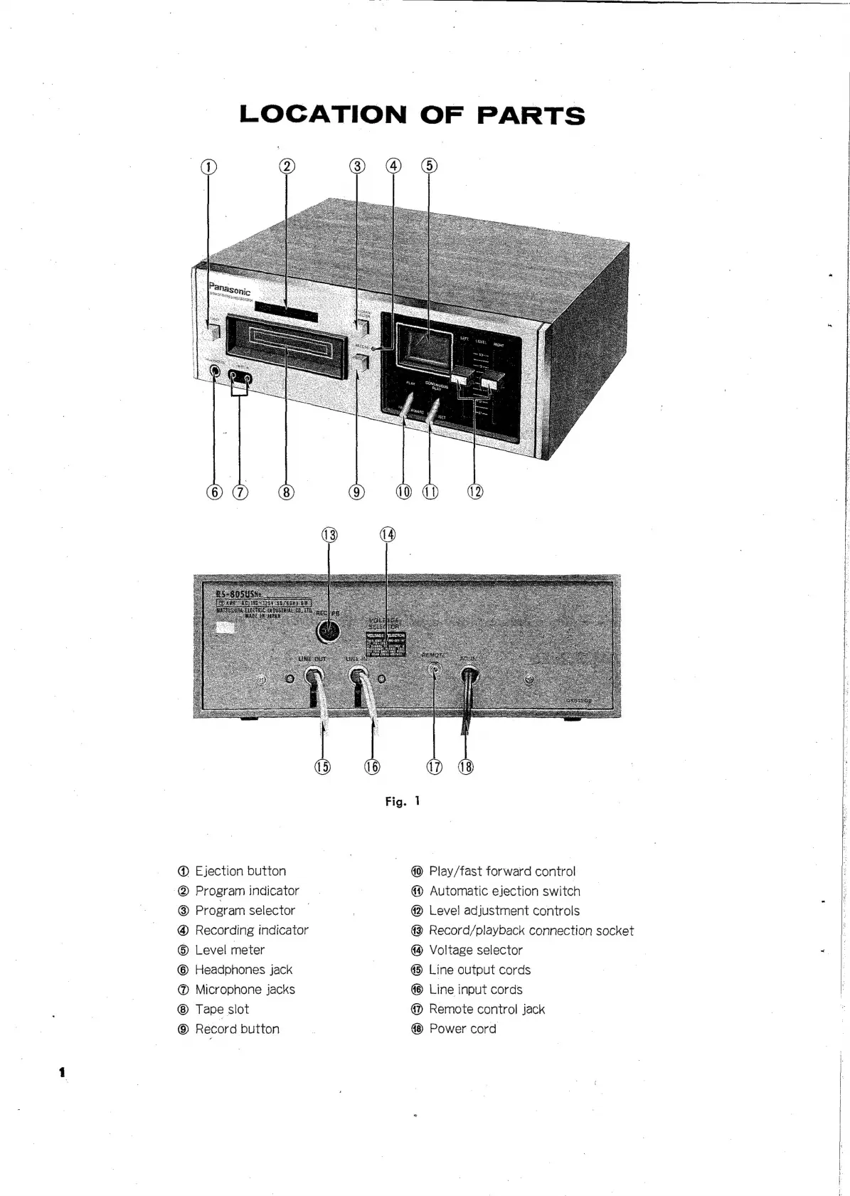 Panasonic RS-805US - Location of Parts