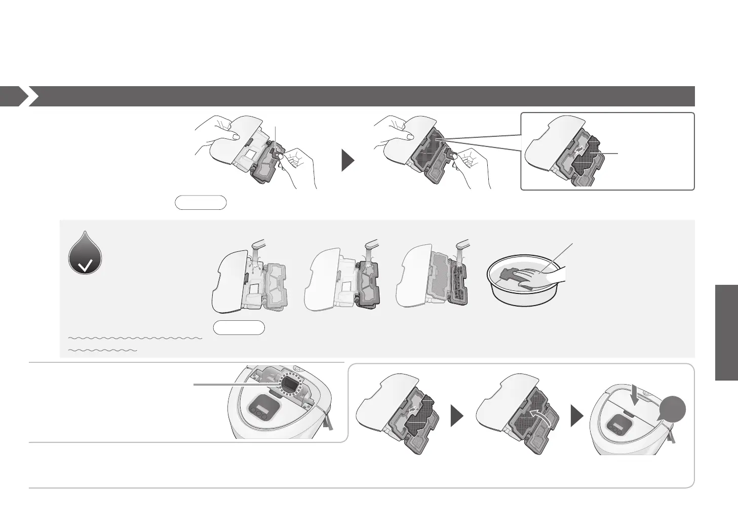 Please dry the dust box completely for about 24 hours in a well-ventilated place. (To avoid odor or clog)