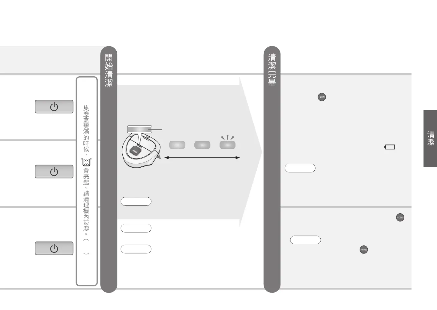 ●主機會根據房間大小及灰塵數量而決定清潔時間。