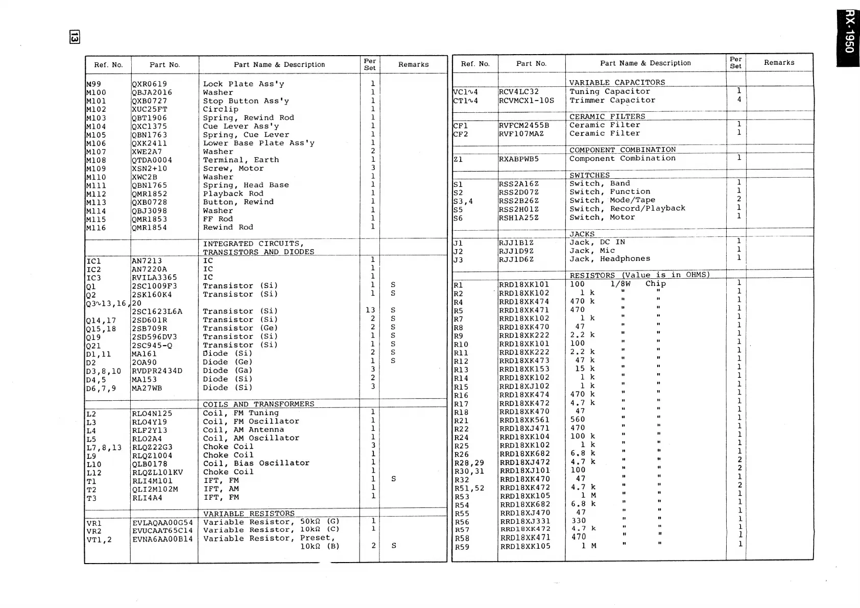 Panasonic RX-1950 - Variable Resistors
