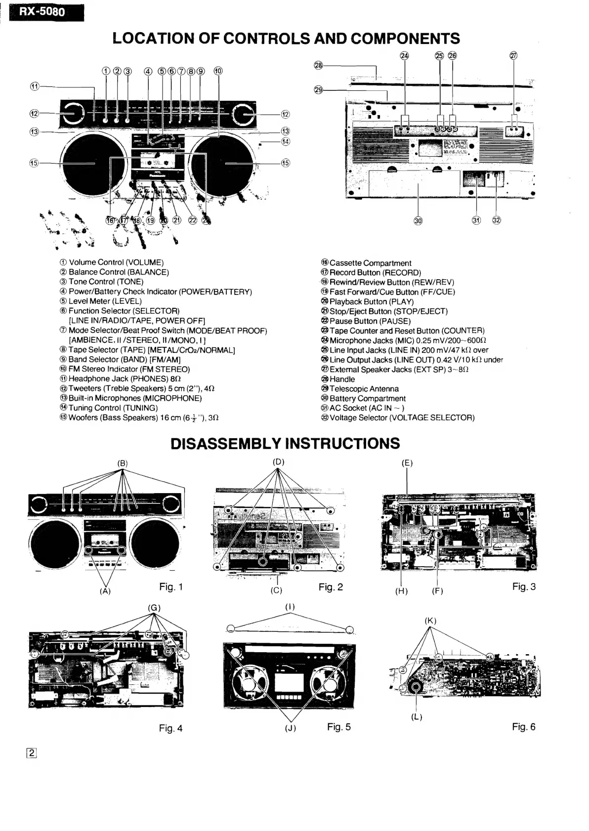 Panasonic RX-5080 - Location of Controls and Components