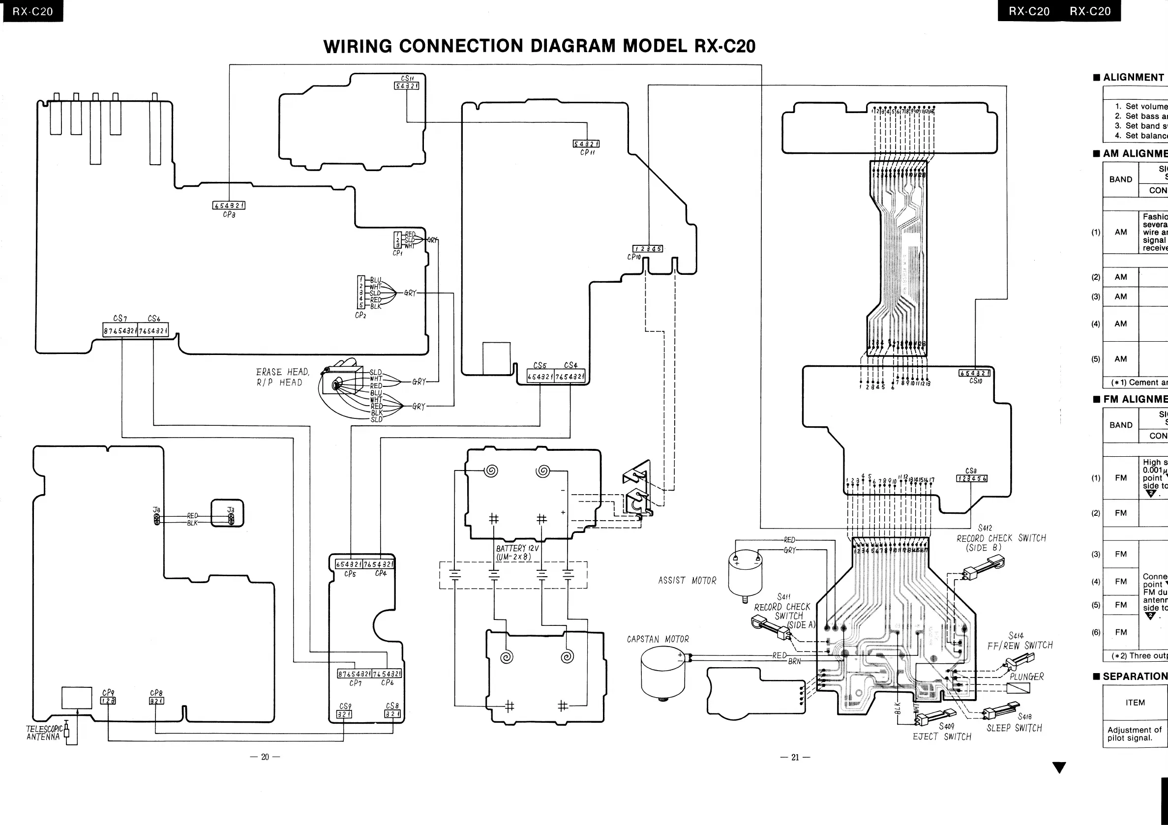 Panasonic RX-C20 - Wiring Connection Diagram; Alignment Procedures; AM Alignment Instructions; FM Alignment Instructions