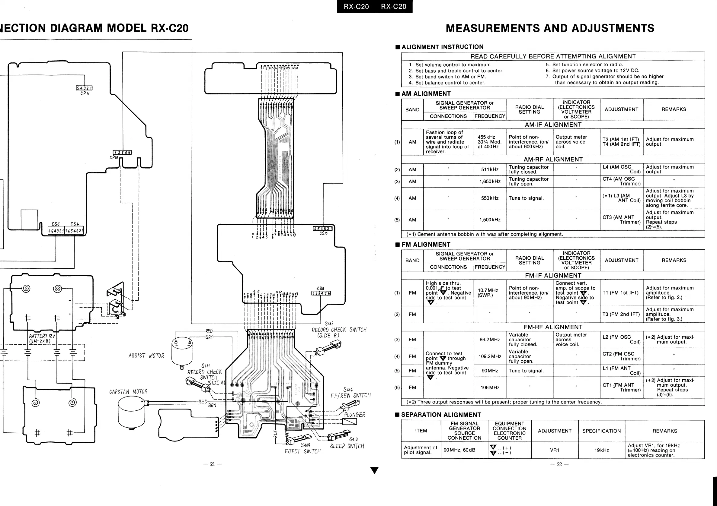 Panasonic RX-C20 - Measurements and Adjustments; AM Band Alignment; FM Band Alignment