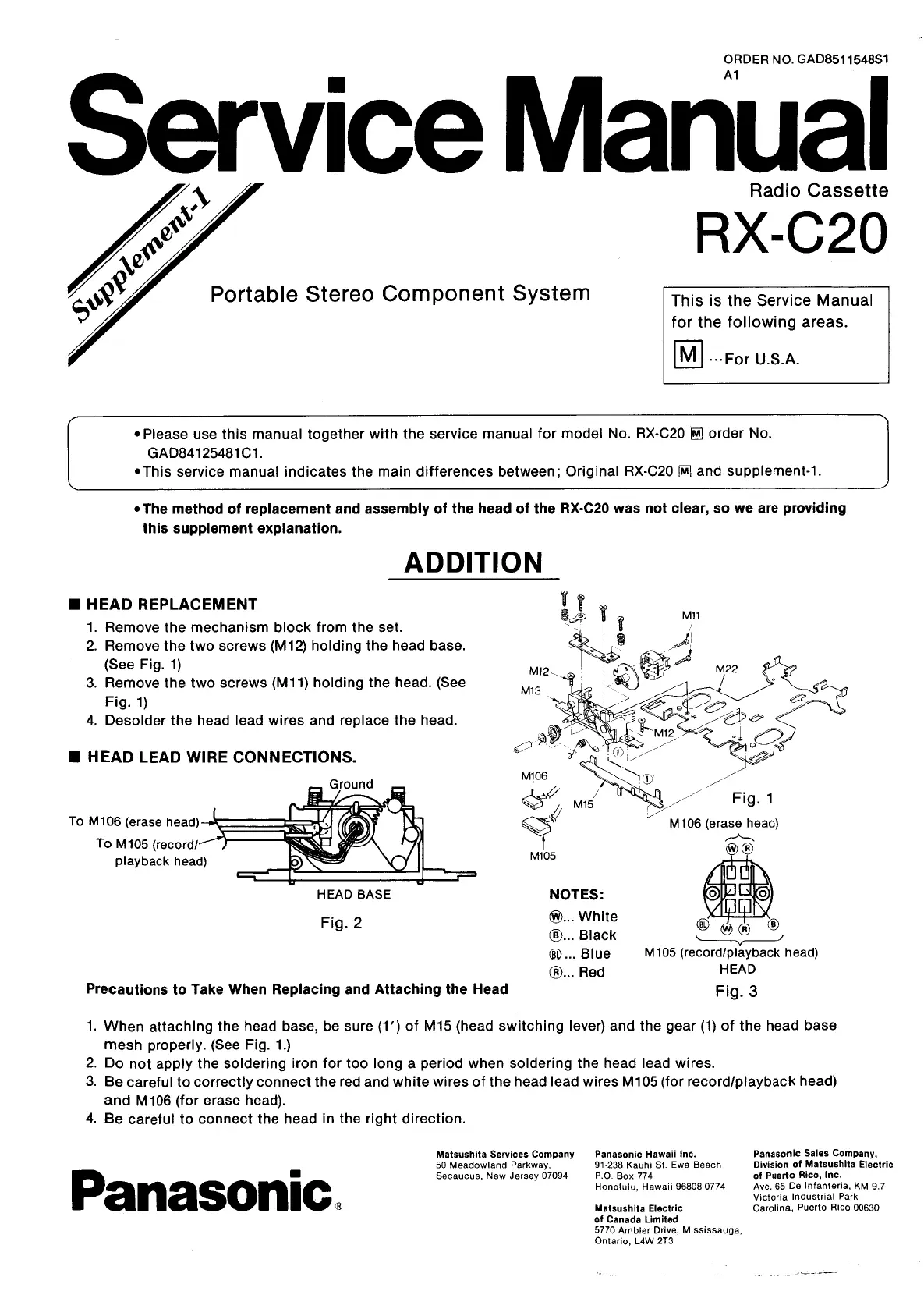 Panasonic RX-C20 - Head Replacement Procedures