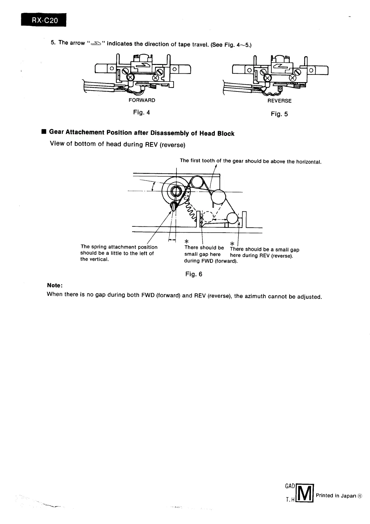 Panasonic RX-C20 - Gear Attachment Position after Disassembly of Head Block