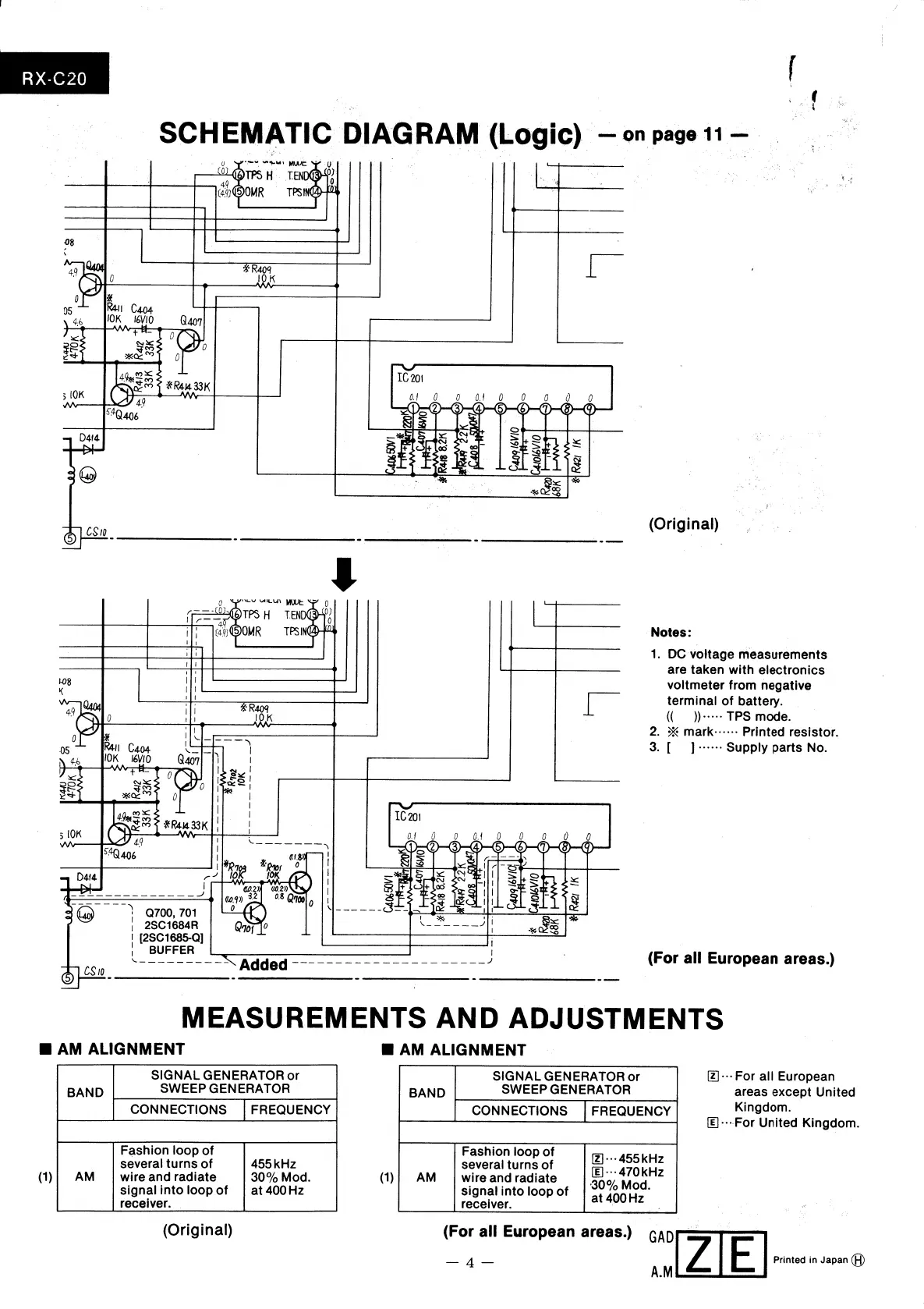 Panasonic RX-C20 - Logic Schematic Diagram; AM Alignment Procedures