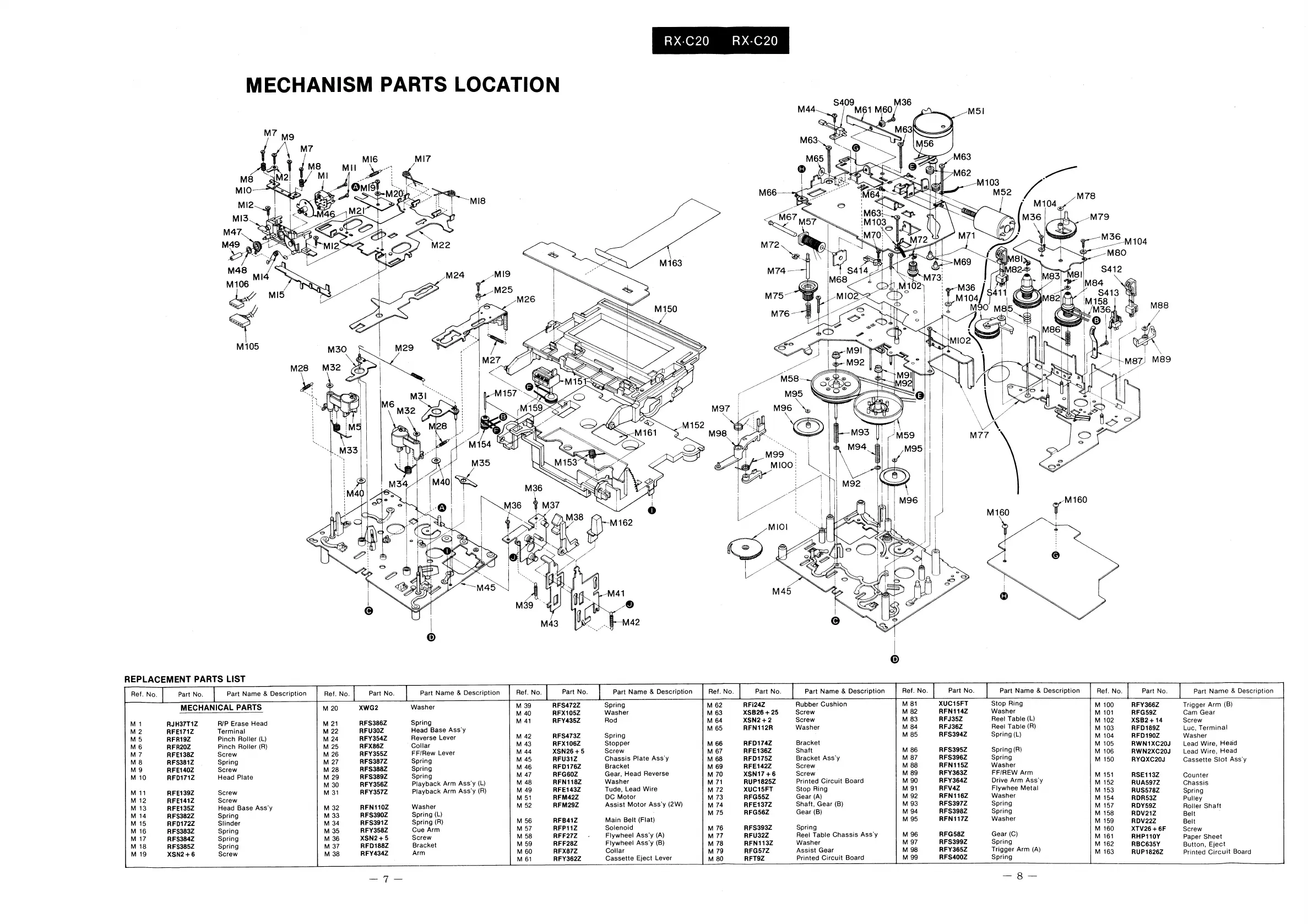 Panasonic RX-C20 - Mechanism Parts Location; Mechanism Parts List