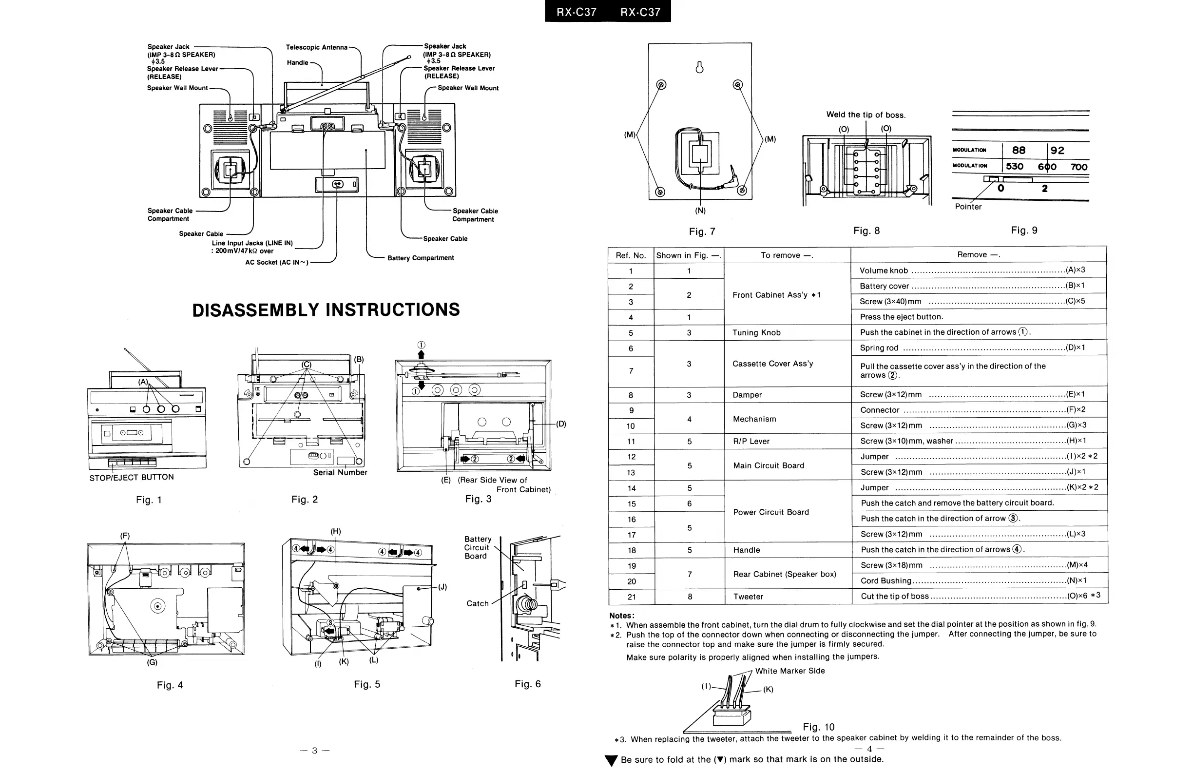 Panasonic RX-C37 - Disassembly Instructions; Component Removal Steps; Assembly Notes