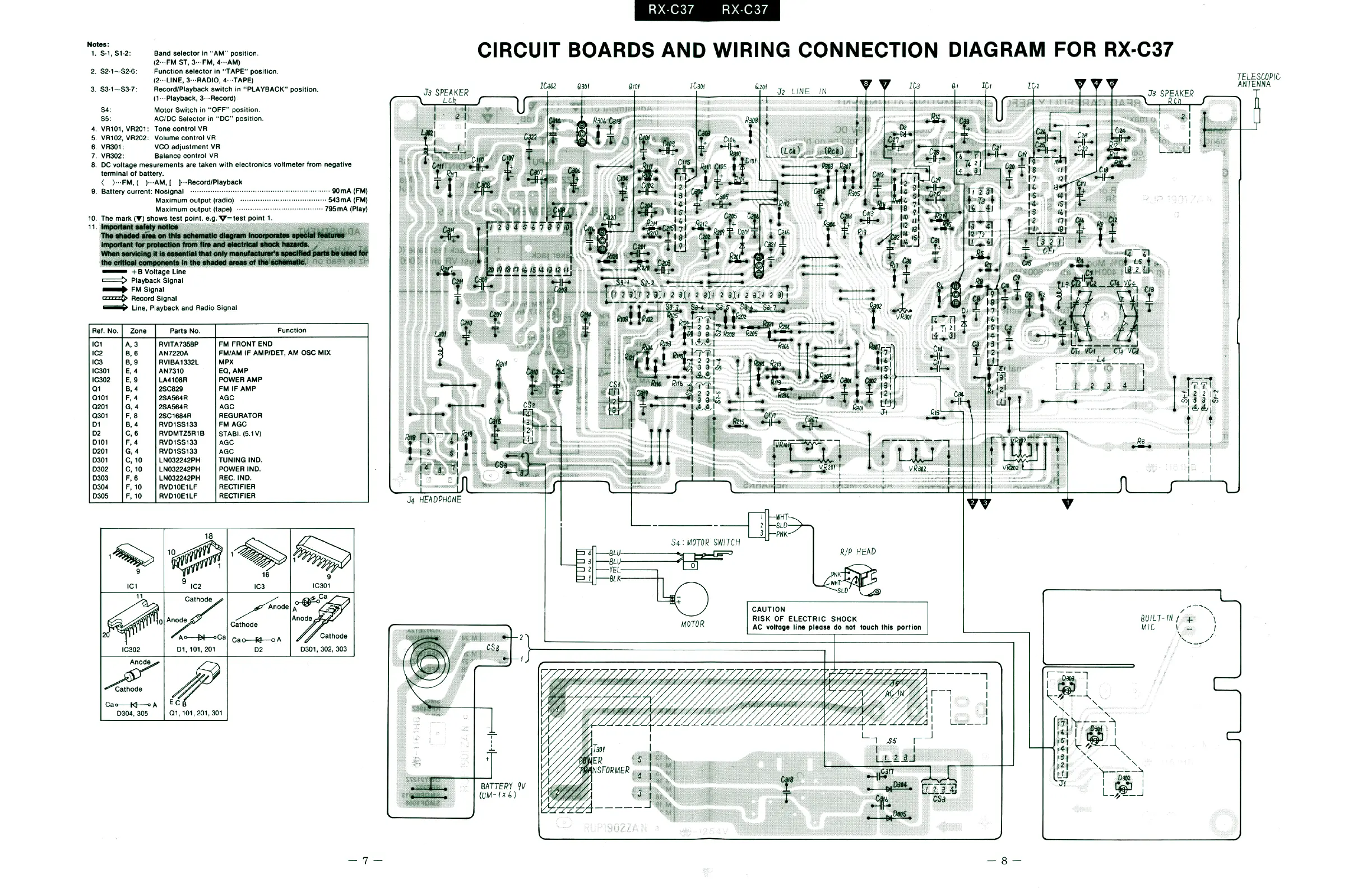 Panasonic RX-C37 - Circuit Boards and Wiring Diagram; Circuit Board Layout and Connections; Component Identification and Notes