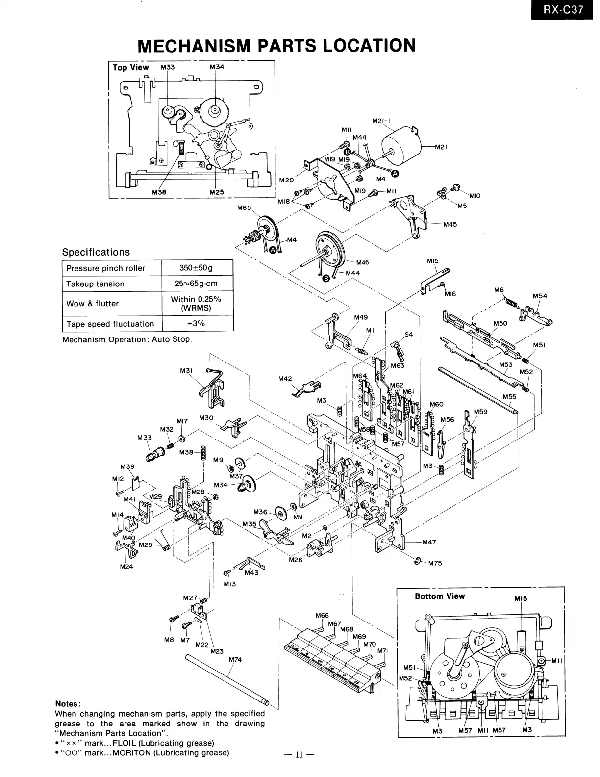 Panasonic RX-C37 - Mechanism Parts Location; Mechanism Component Diagrams; Mechanism Specifications