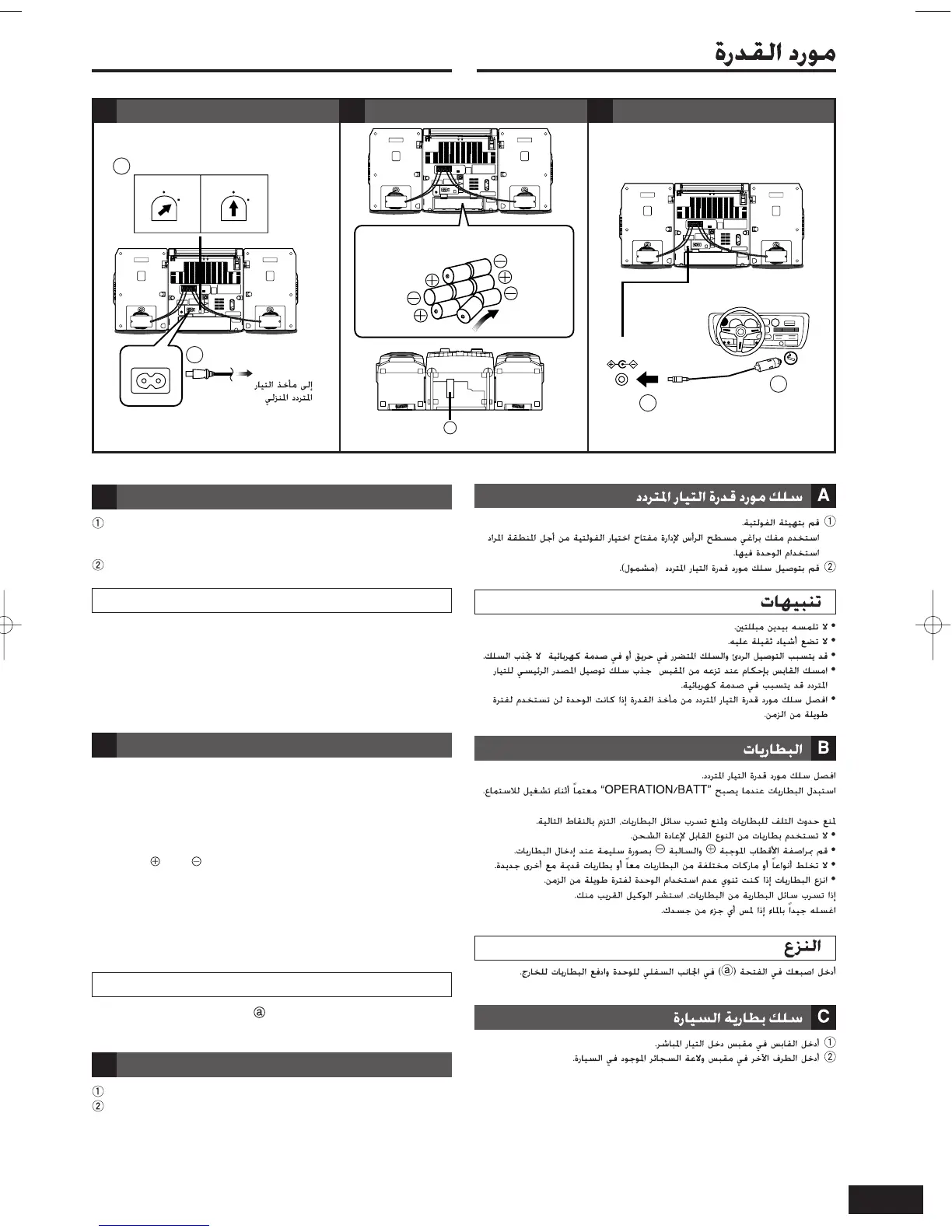• Disconnect the AC power supply cord from the household AC outlet