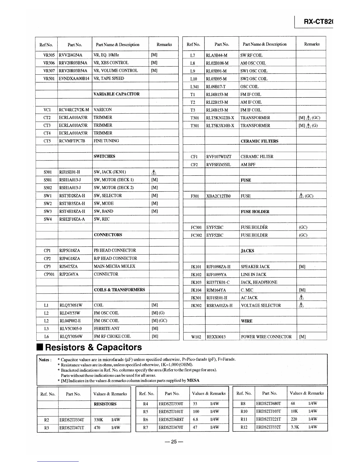 Panasonic RX-CT820 - Resistors and Capacitors